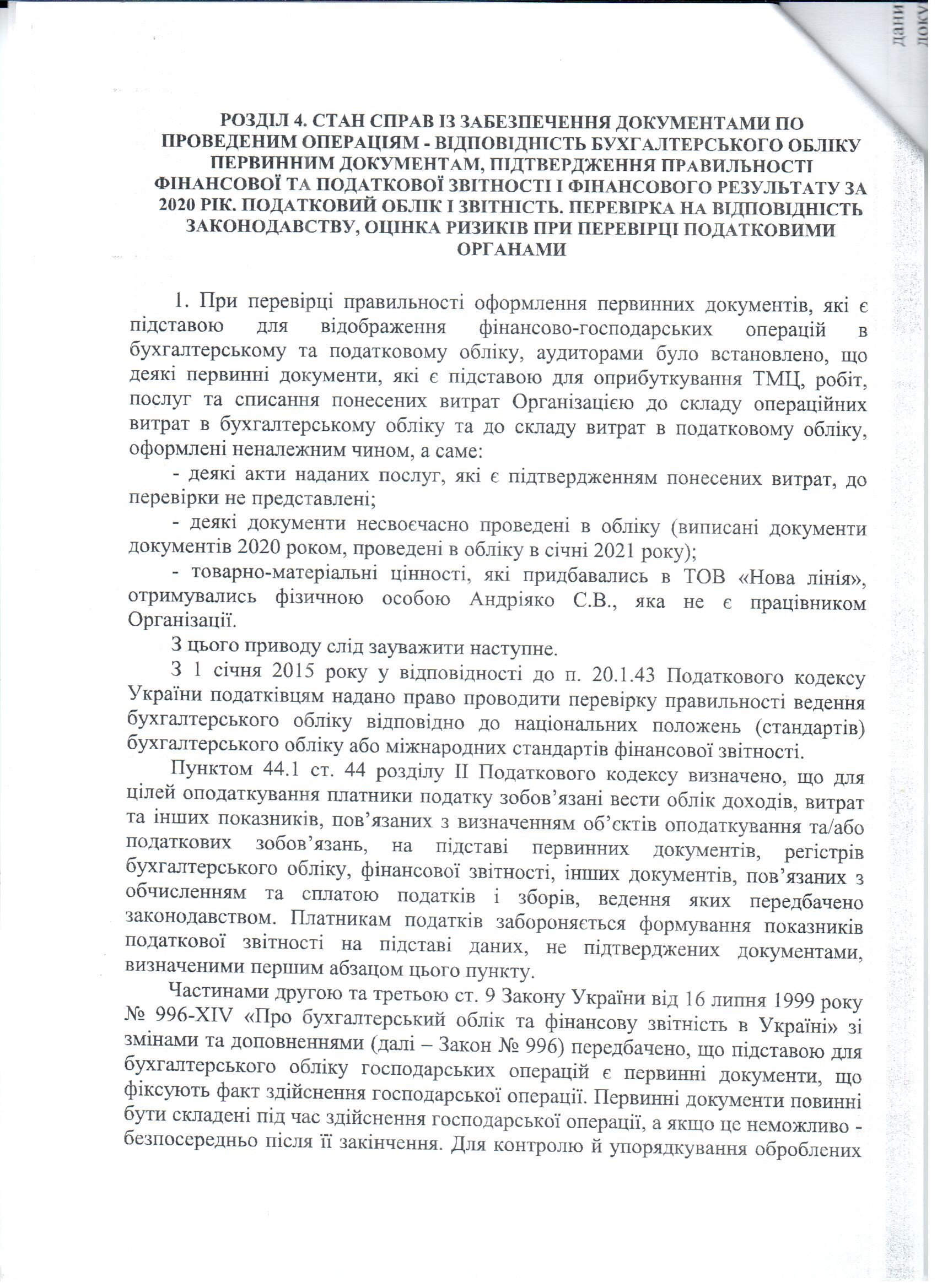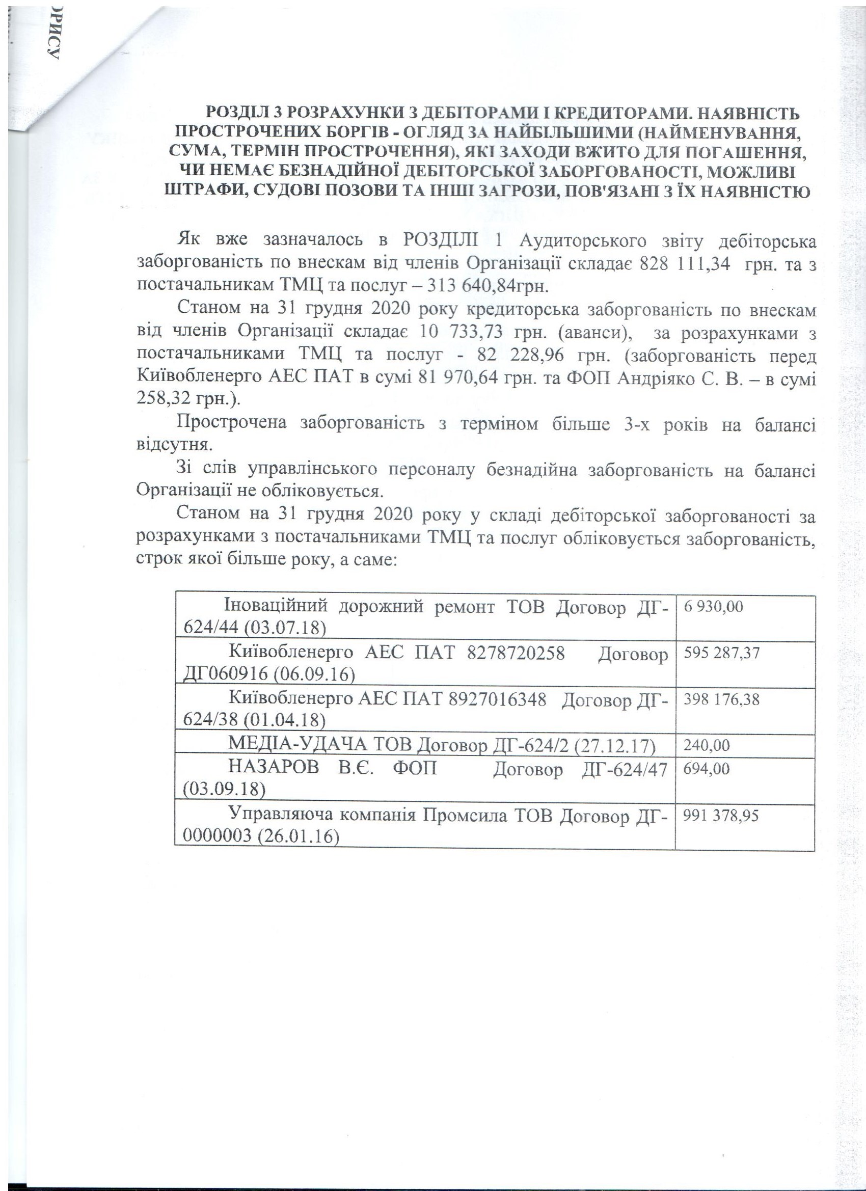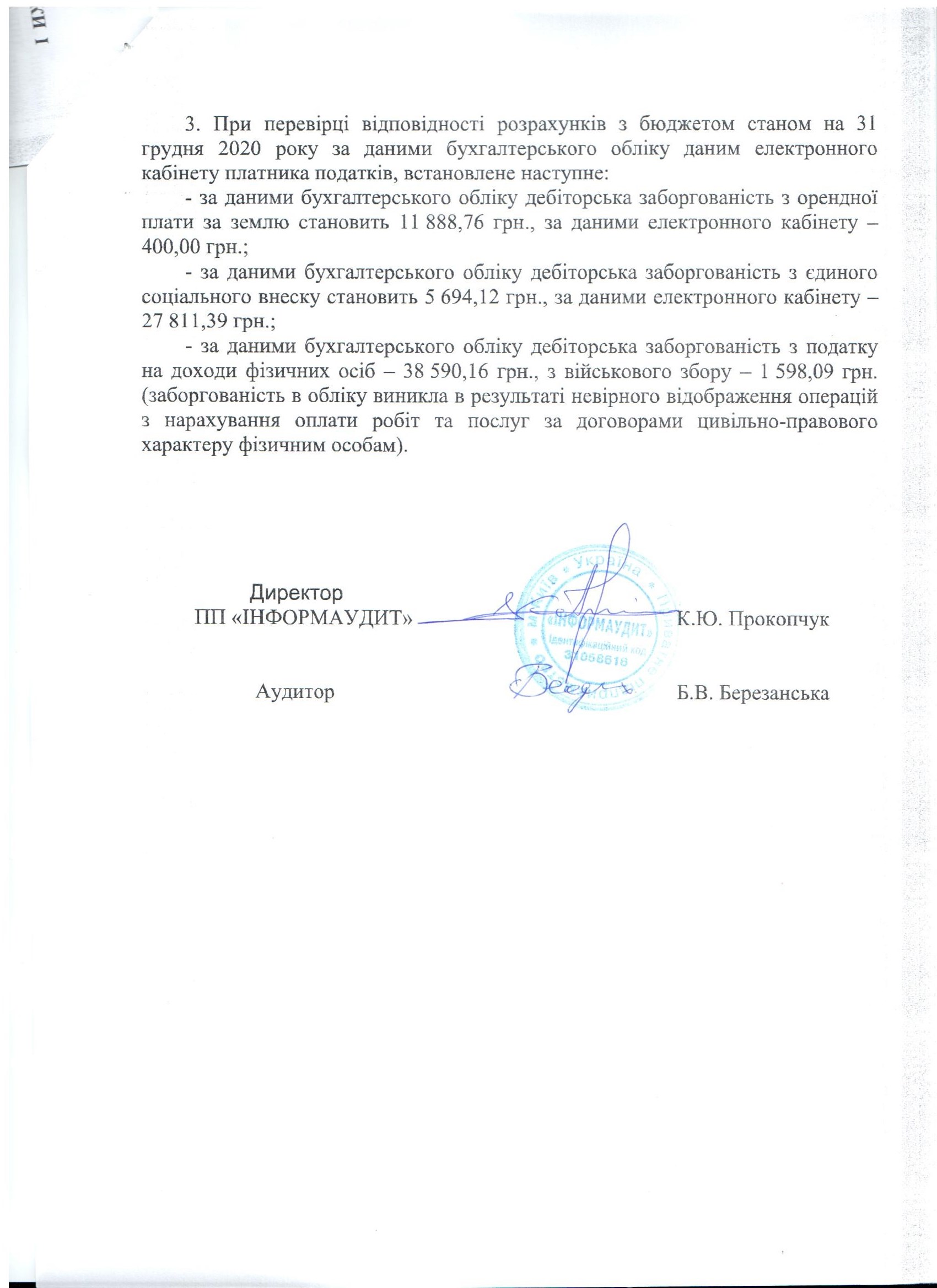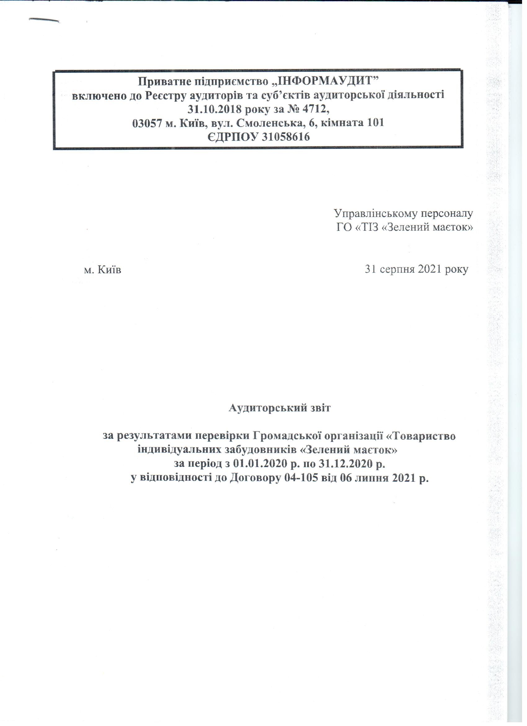 Аудиторський звіт за 2020 рік