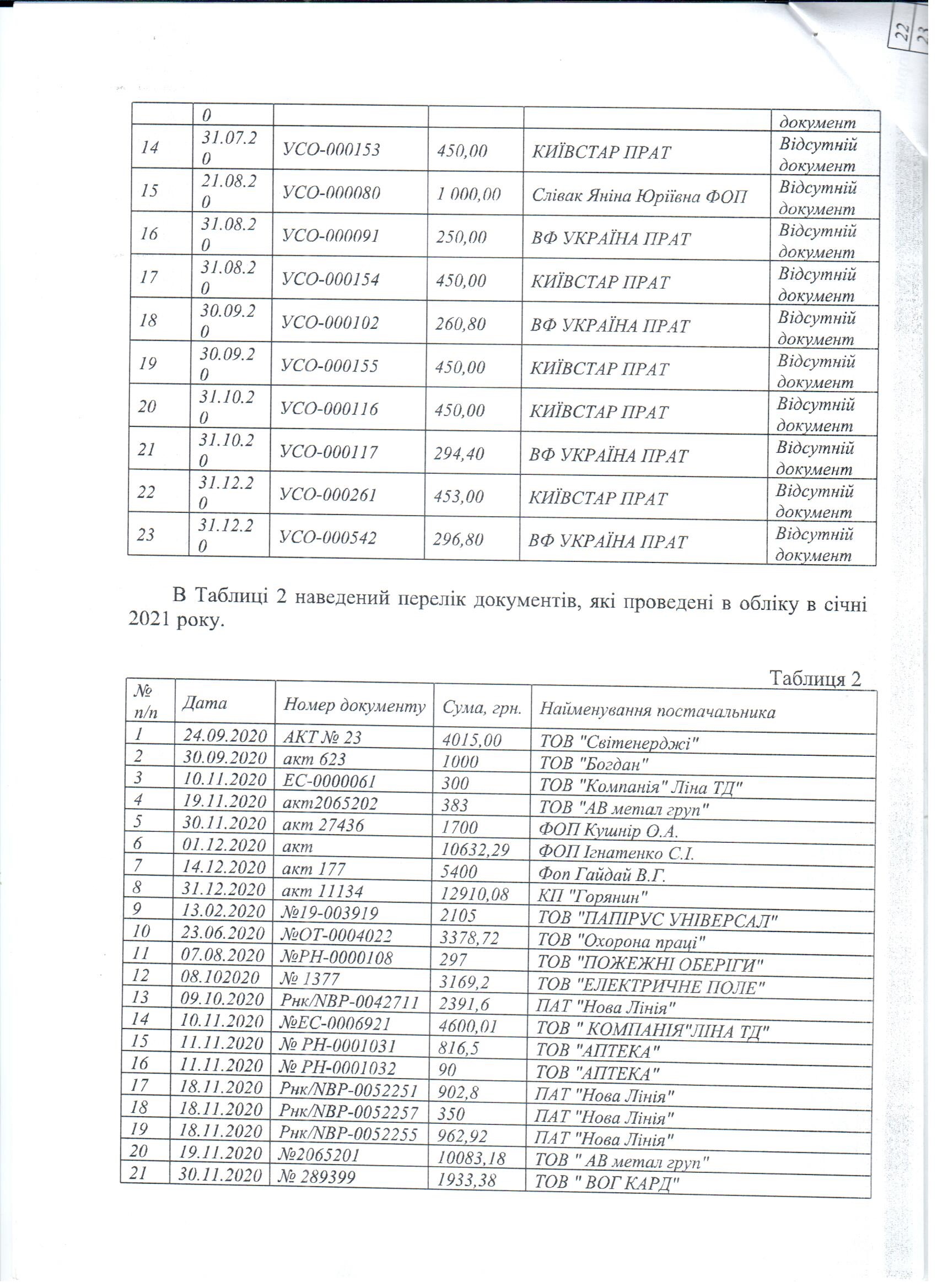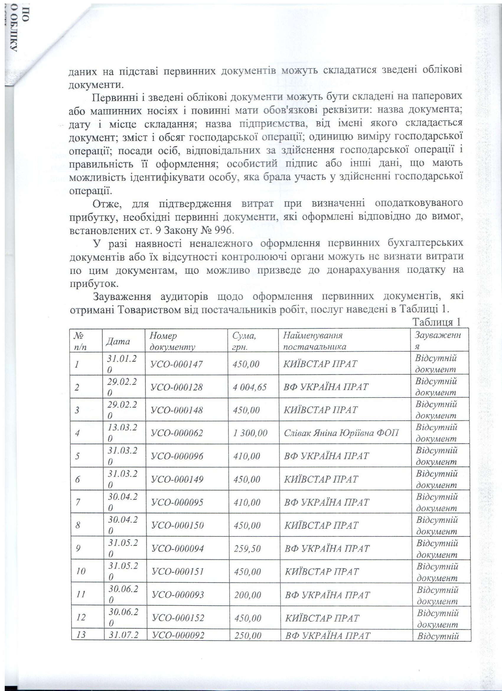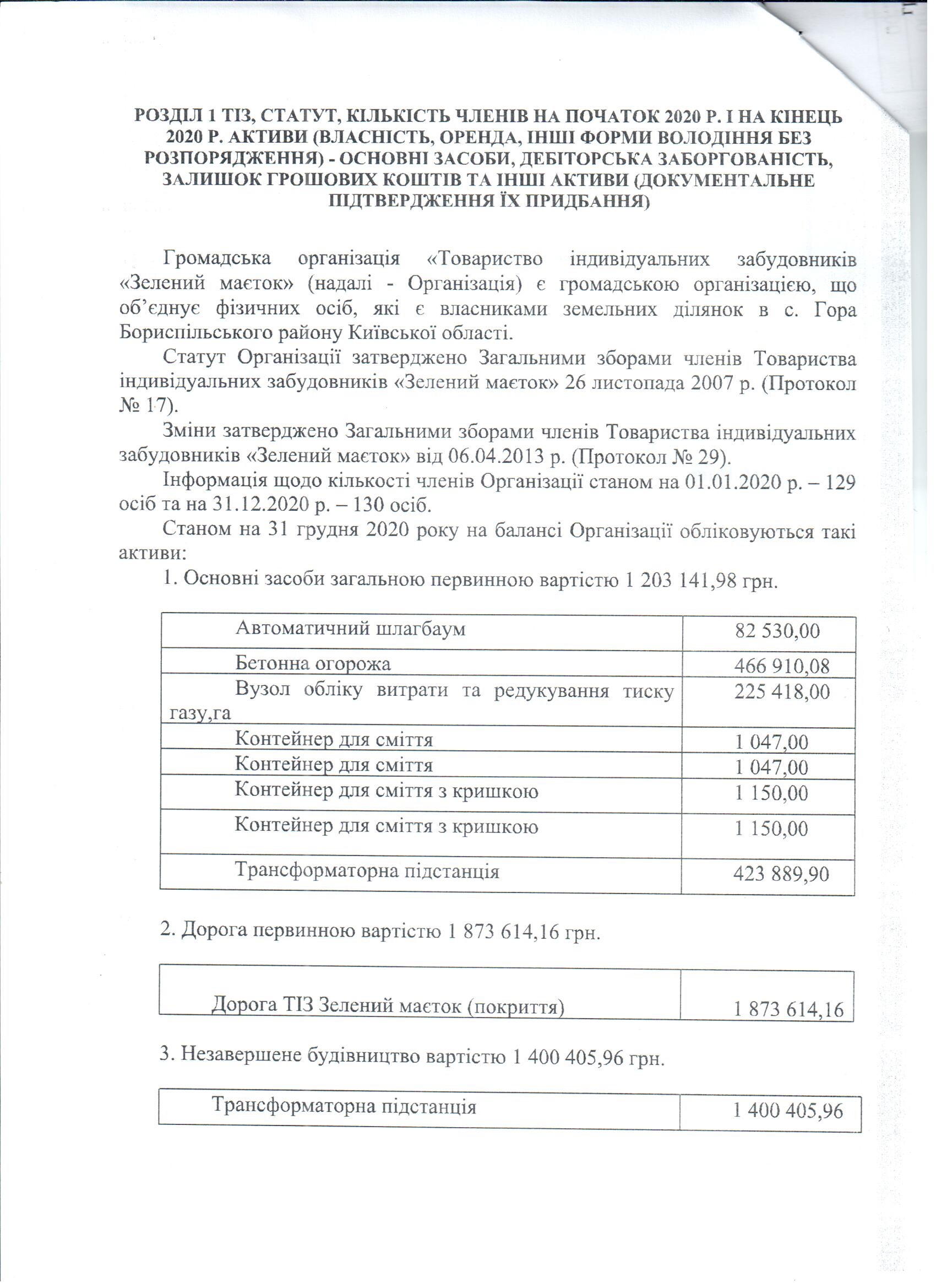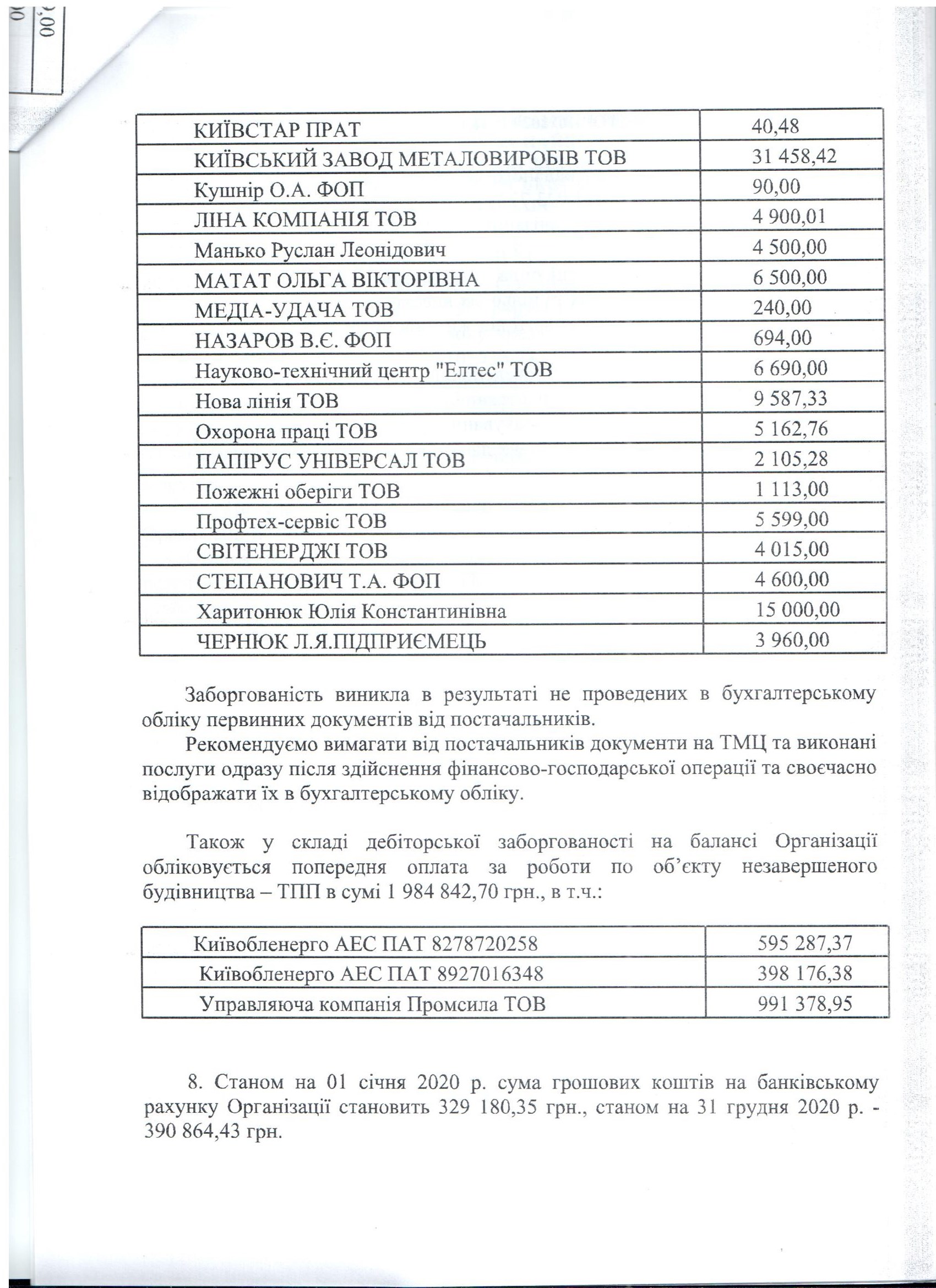 Аудиторський звіт за 2020 рік